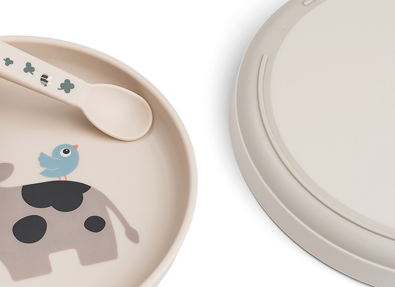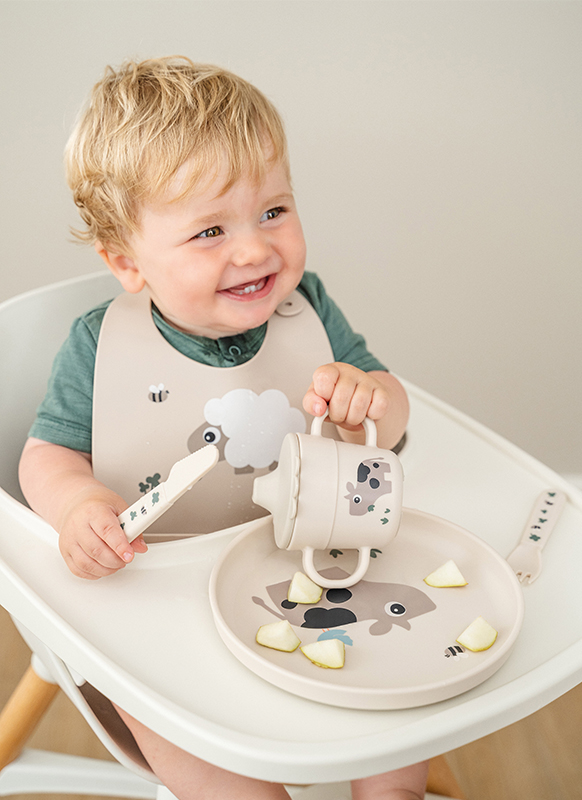 Dankzij de antislip blijft het bordje netjes op tafel. De hoge rand helpt kleine kinderen zelf te leren eten, met een vrolijke Dotti die uitnodigt om elk hapje te verkennen.