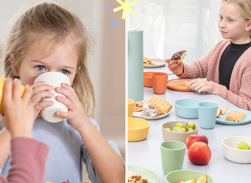 Mix en match erop los en creëer een vrolijke eettafel die perfect past bij jouw opvang.
